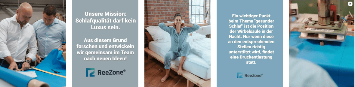 Nach vielen Jahren Erfahrung in der Matratzenbranche fragt ReeZone® „Und nun?“ – denn während unser Alltag von Technologie und Innovation geprägt ist, bleibt der Schlaf oft auf dem Stand eines Smart-Weckers. Genau diese Lücke will ReeZone® schließen: Aus dem Wunsch, gesunden Schlaf für alle zugänglich zu verbessern, entstand der Multizonenlift, der direkt großen Zuspruch fand. Die Mission ist klar: Schlafqualität darf kein Luxus sein, sondern soll für jeden bezahlbar, individuell und ohne großen Aufwand erreichbar werden – durch kontinuierliche Forschung und echte Innovation für die vielen Stunden, die wir im Bett verbringen.